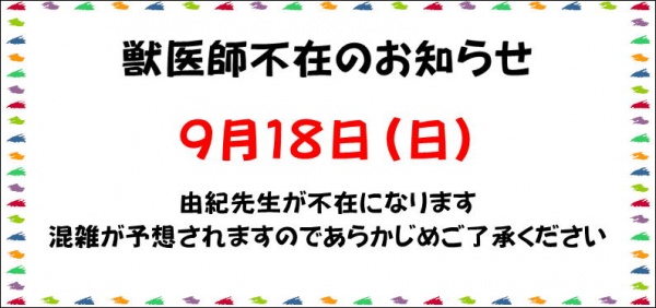 2016.9.10 駐車場がリニューアルしました 当院はお盆明けから駐車場の工事が始まりました しかし、初日から台風が来て工事は中止になってしまいました・・・ 工期が延長してしまいどうなるのか心…… 2016.9.8 獣医師不在のお知らせ …… 2016.9.2 「広報とみや」で紹介されました YouTubeでインタビューの動画が紹介されています!(リンク) 先月、当院患者さまご夫妻と一緒にドキドキしながら取材を受けました…… 2016.8.19 駐車場工事のお知らせ 今回の工事では、第一駐車駐車場の道路に面した1台分のみ使用できます また、第二駐車場は道路に面した側は使用できます…… Page 75 of 110« 最初へ‹ 前へ7374757677次へ ›最後へ »