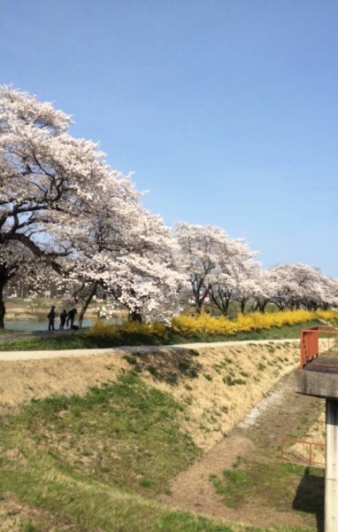 すごいですね~!! 休日と満開、晴天が重なりたくさんの人で賑わっていました。 息子は友達と一緒に来てました。 私は桜と一緒に記念撮影(*^_^*) 娘たち……